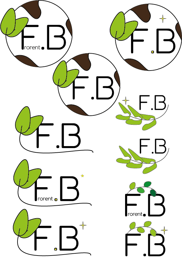 Pendant mon stage de première année, j'ai été chargé de créer l'identité graphique de Florent Bailleul. Voici la planche des premiers logos que je lui ai suggérés.